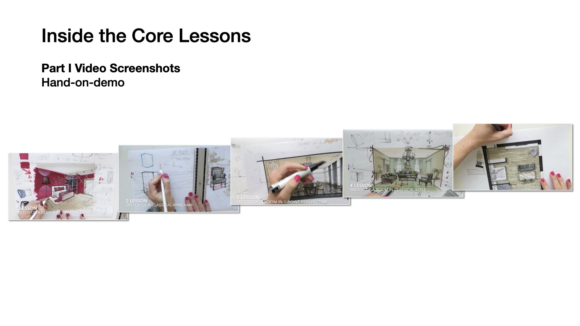 This course was originally developed and refined through live training at the university level, where I taught interior designers the fundamentals of sketching and perspective drawing. Over the years, the program was tested and perfected with hundreds of interior designers, both professionals pursuing continuous education and students beginning their design journey.