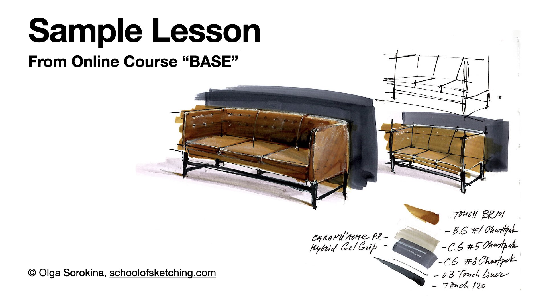 As a designer I learned how to sketch at school but unfortunately never really developed the skill… So Olga's course was a great way to brush up on the principles of perspective and along the way I also picked up a whole suitcase of tricks on how to make my sketches look really professional!